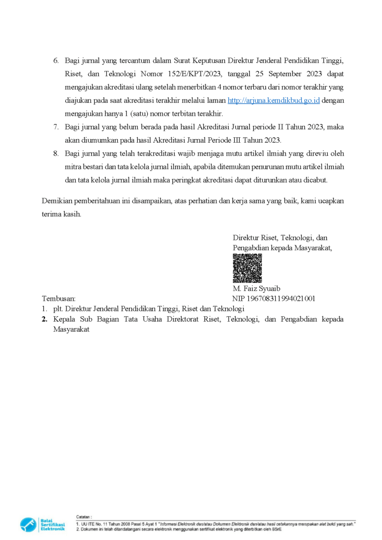 Pemberitahuan terkait Akun SINTA Bersama ini kami sampaikan dengan hormat, salinan surat dari Direktorat