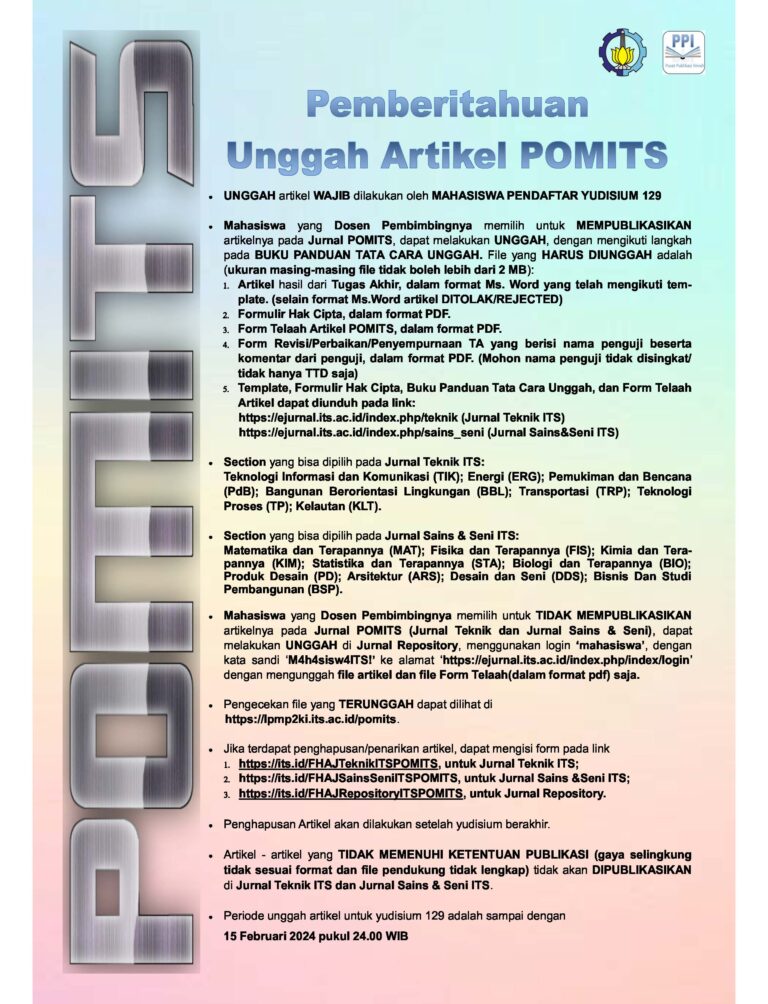 Terkait dengan semakin berkembangnya kebutuhan akan unggah artikel mahasiswa S1/D4 ke Publikasi Online ITS