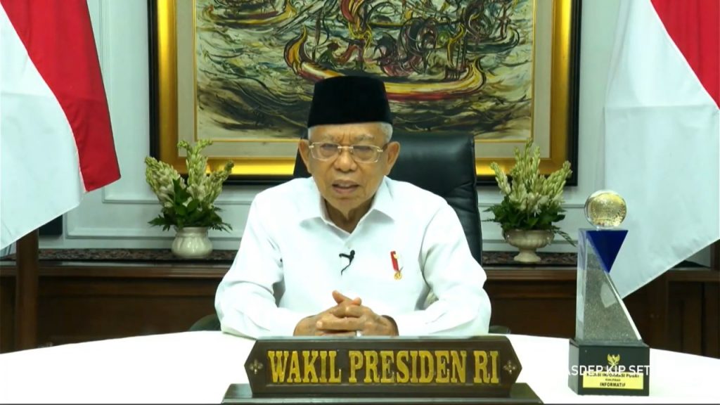 Wakil Presiden RI Prof Dr (HC) KH Ma’ruf Amin saat memberikan sambutan secara virtual pada acara Anugerah Keterbukaan Informasi Publik 2020