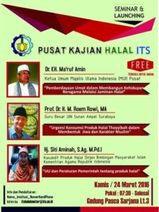 The launch of the ITS Halal Center was marked by a national seminar featuring three keynote speakers: Ma’ruf Amin, Chairman of the Indonesian Ulema Council (MUI); M. Roem Rowi, Professor at UIN Sunan Ampel Surabaya; and Siti Aminah, Head of the Halal Products Subdirectorate, Ministry of Religious Affairs of the Republic of Indonesia.