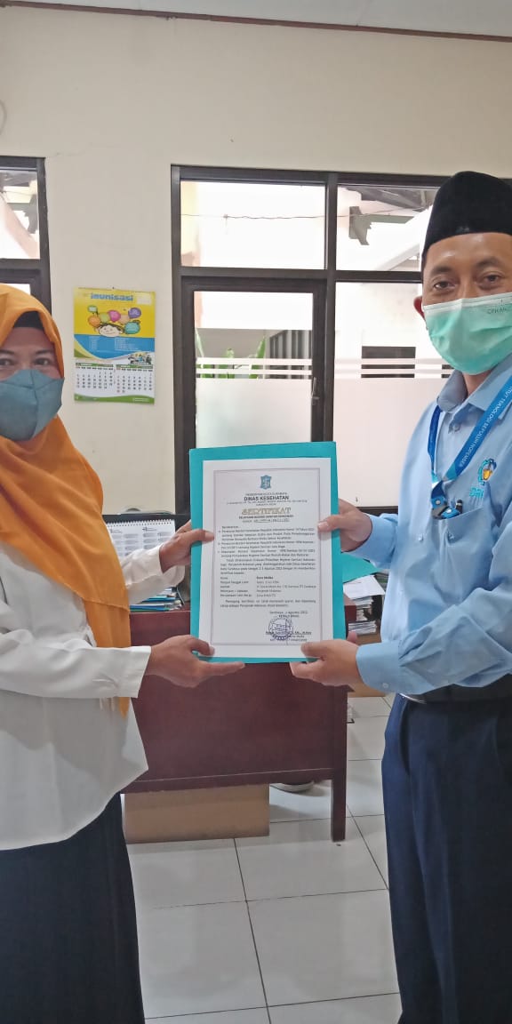 Penyerahan sertifikat Laik Hygiene Sanitasi (SLHS) bagi para tenant di Zona Kulier Halal Aman Sehat (KHAS) ITS