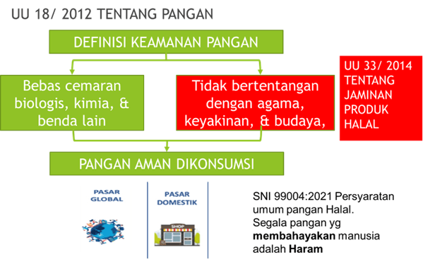 Pusat Kajian Halal ITS turut berkontribusi aktif dalam peningkatan daya saing Usaha Mikro, Kecil, dan Menengah di Provinsi Jawa Timur melalui kegiatan pendampingan pelaku usaha (https://www.its.ac.id/pkh/id/pendampingan-pelaku-usaha/). Setiyo Gunawan sebagai kepala pusat kajian halal ITS mengingatkan berdasarkan UU no 18 Tahun 2012 bahwa definisi Keamanan Pangan adalah kondisi dan upaya yang diperlukan untuk mencegah pangan dari 2 faktor, yaitu: (1) kemungkinan tiga cemaran, yaitu cemaran biologis, kimia, dan benda lain yang dapat mengganggu, merugikan, dan membahayakan kesehatan manusia serta (2) tidak bertentangan dengan agama, keyakinan, dan budaya masyarakat sehingga aman untuk dikonsumsi.