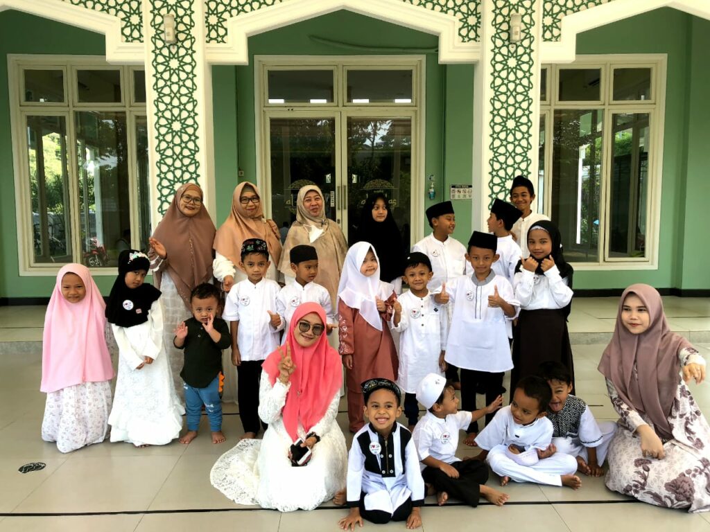 Penampilan santri TPQ Bina Insan Mulia didampingi pengurus TPQ memeriahkan acara sosialisasi kesadaran halal.