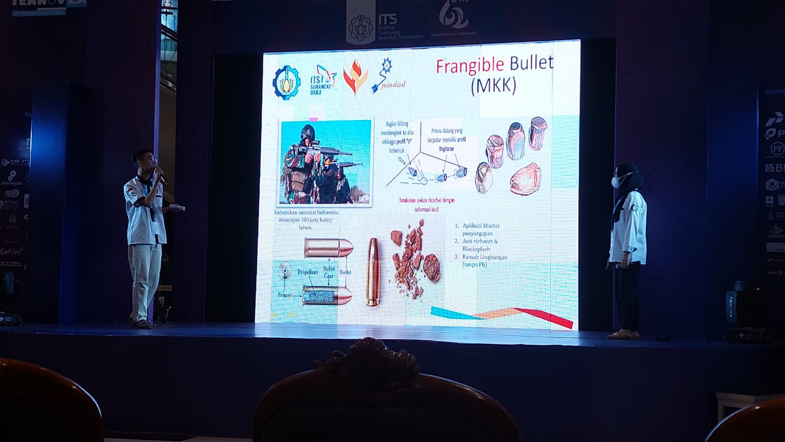 Apart from that, the IoTTP research center also had the opportunity to do a demo-day, where representatives from the IoTTP research center, namely Wafiq and Ninik, explained about their superior innovation product, the Frangible Bullet, on the TENNOVEX 2022 main stage. Here is shown the background of the research innovation, advantages, and product form of the Frangible Bullet.