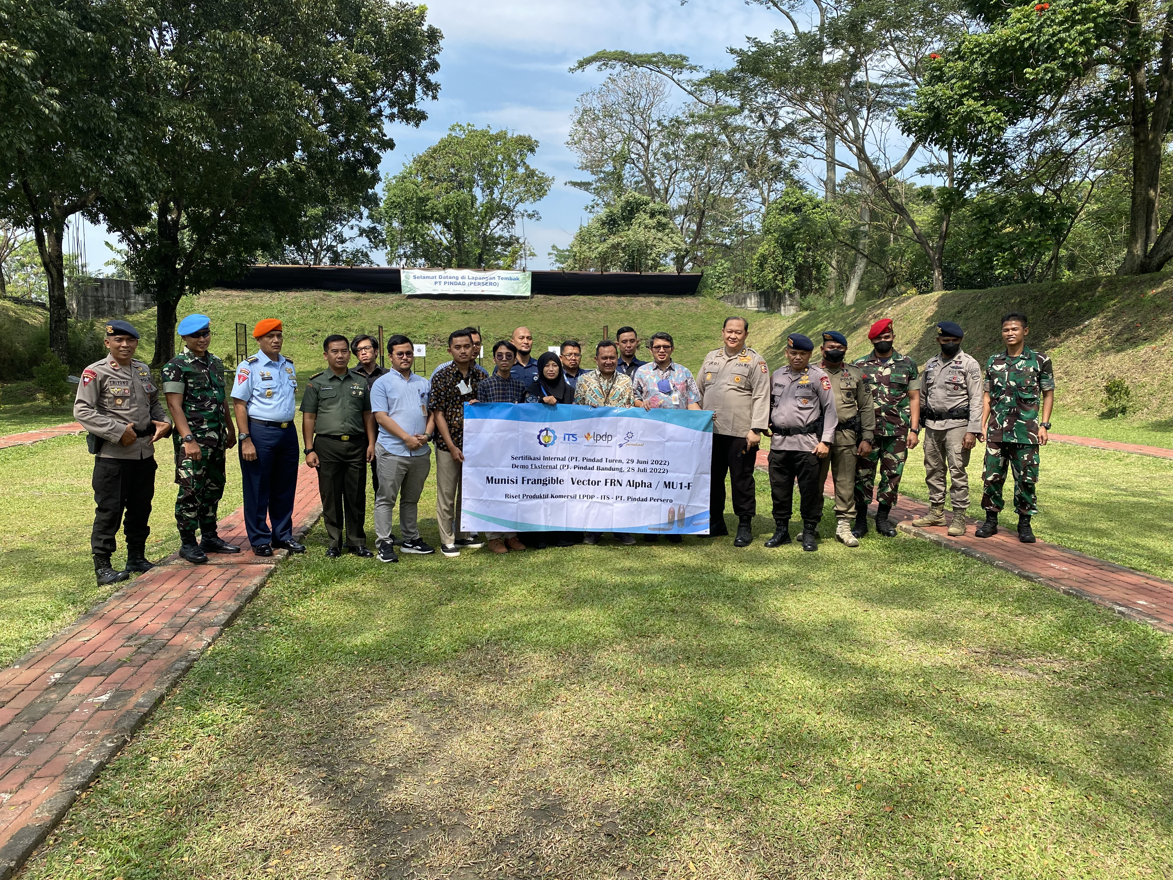 PT Pindad melaksanakan kegiatan demo penembakan munisi frangible kaliber 9×19 mm (MU-1F) pada Kamis, 28 Juli 2022 di Lapangan Tembak PT Pindad, Bandung. Munisi Frangible merupakan hasil penelitian PT Pindad dan ITS didukung oleh LPDP yang merupakan inovasi terbaru pada produk munisi. Kegiatan uji dilaksanakan dengan menerapkan standar dan tolok ukur pengujian produk munisi. Pengujian dihadiri oleh Direktur Teknologi dan Pengembangan PT Pindad, Sigit P. Santosa, Sops Paspampres, Kopassus, Kopasgat, Marinir, Subditbinmu Puspalad, Baglog Korbrimob, Bagren Korbrimob, Satlat Brimob, Bagrenlog Slog Polri, Baginvent Slog Polri, LPDP, serta delegasi Institut Teknologi Sepuluh Nopember.