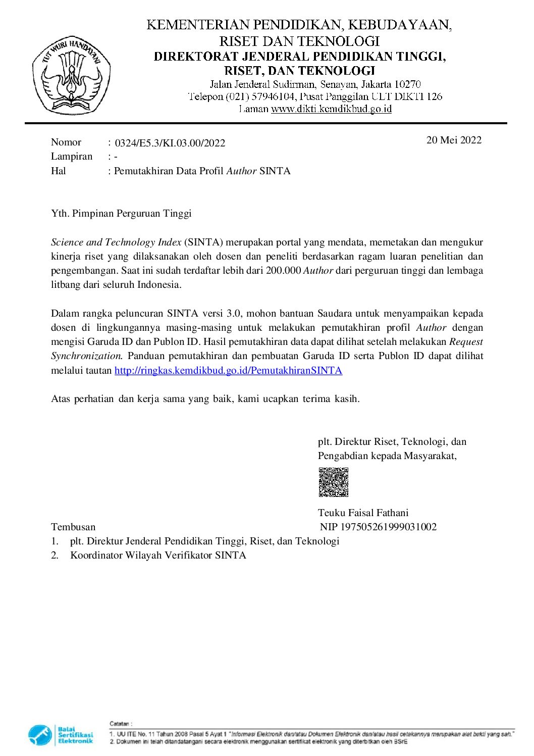 Pemutakhiran Data Profil Author SINTA