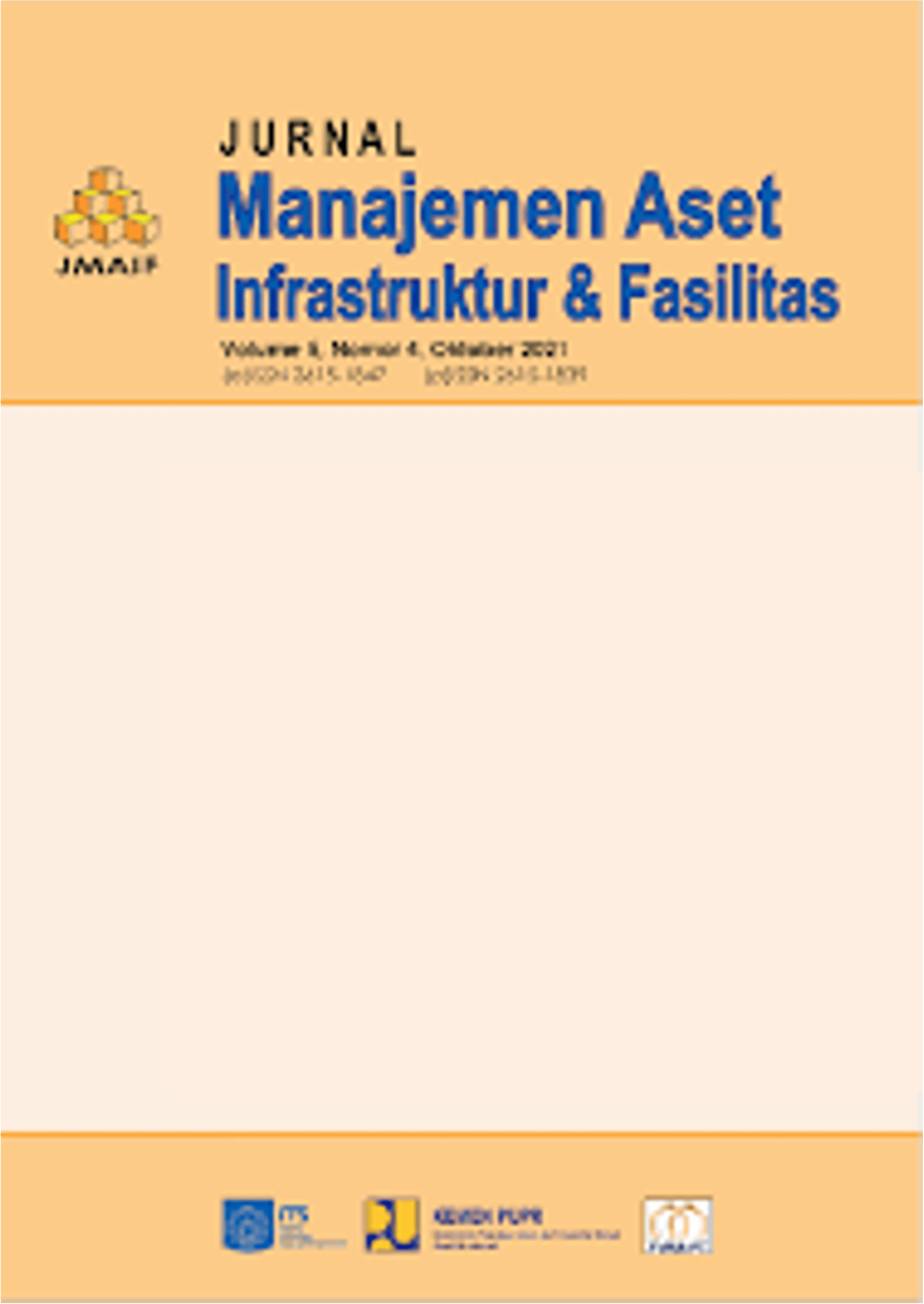 Jurnal Manajemen Aset Infrastruktur & Fasilitas is published by Institut Teknologi Sepuluh Nopember (ITS) in collaboration with the Ministry of Public Works and Public Housing (KemenPUPR), and in cooperation with FoMA-PT (Inter-University Forum for Asset Management).