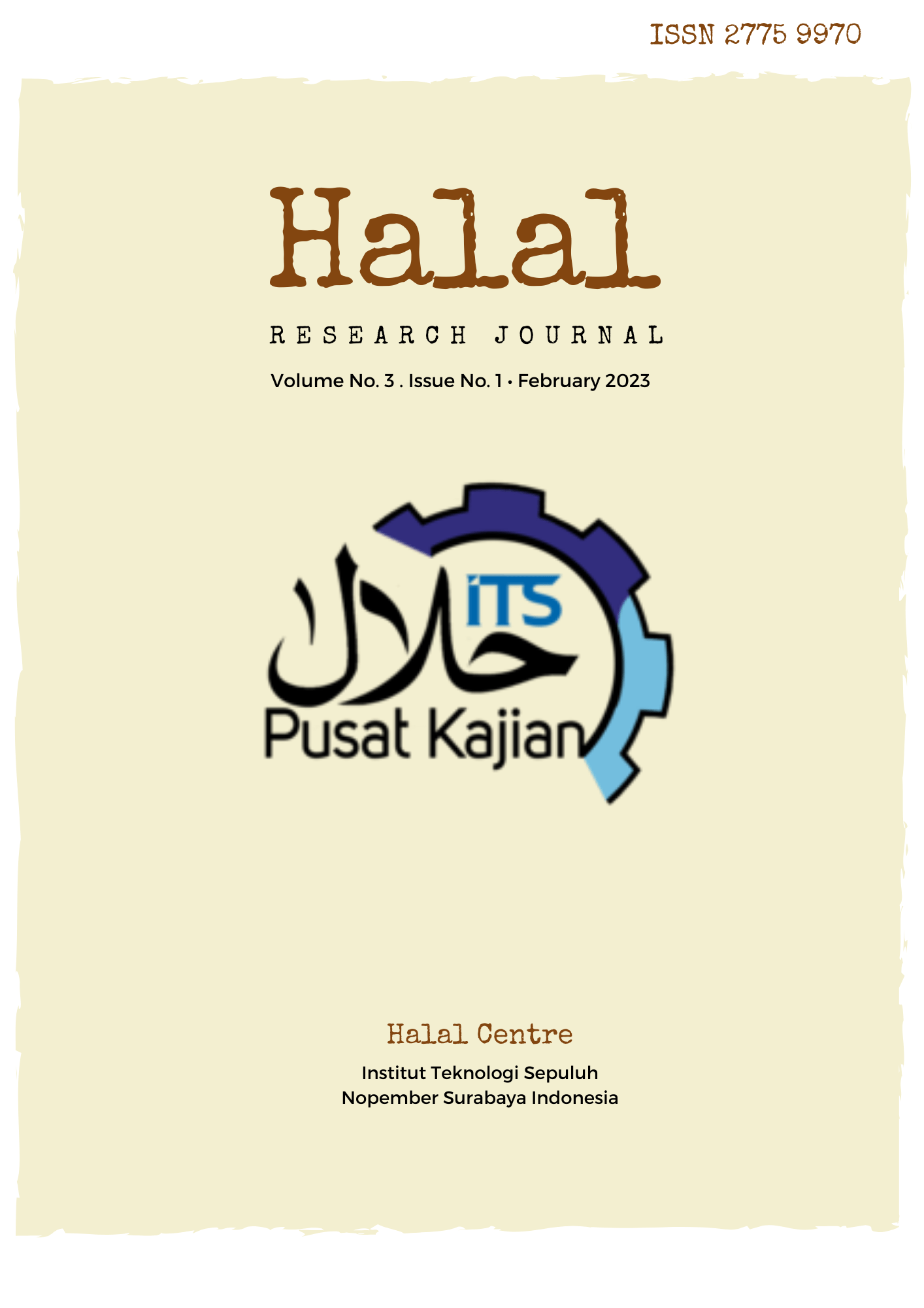Halal Research Journal (HRJ) is a scientific journal published by the Halal Center Institut Teknologi Sepuluh Nopember Surabaya Indonesia. This journal is accredited SINTA 4. This journal contains scientific papers from Academics, Researchers, and Practitioners about research on halal and shariah. This journal is published twice a year in February and July. The paper is an original script and has a research base on halal and shariah. We accept an article in English only.