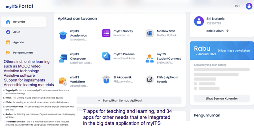 While Indonesia has a strong legal framework for inclusive education, implementation in higher education still faces challenges. Students with disabilities, particularly those with visual impairments, face systemic barriers in accessing digital education systems. ITS’s current digital systems, such as myITSClassroom which consists of 41 applications , are not yet fully equipped with features that support disability inclusion.