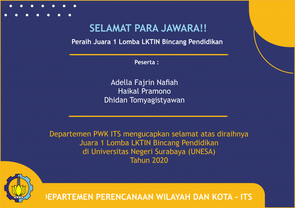 Mahasiswa Departemen Perencanaan Wilayah dan Kota memiliki banyak prestasi yang diraih, baik dari tingkat lokal, wilayah, nasional maupun internasional. Mahasiswa PWK ITS memang di didik untuk menjadi mahasiswa yang cerdas dan berkompeten dalam bidangnya, selain itu pula mahasiswa juga mendapatkan pelajaran tentang bersosialisasi dengan masyarakat melalui pengabdian masyarakat. Dari semua itu mahasiswa bisa mengambil pelajaran – pelajaran yang bisa di petik dan dapat di aplikasikan untuk masa depan mereka serta menjadi panutan bagi mahasiswa baru untuk bisa memacu semangatnya dalam mendapatkan prestasi. Sehingga nantinya mahasiswa PWK telah siap bersaing di dunia kerja. Berikut beberapa Prestasi Mahasiswa PWK ITS :