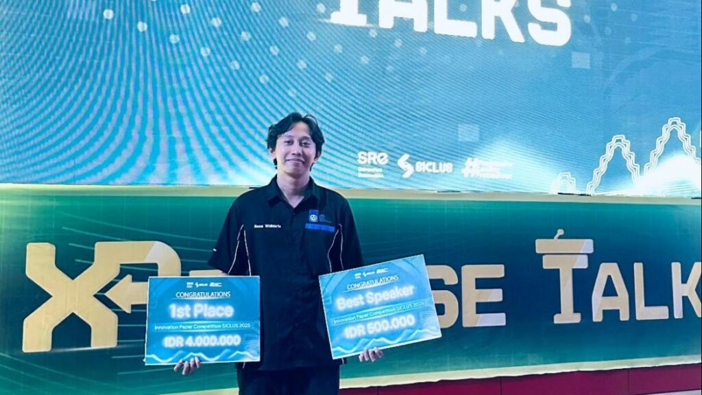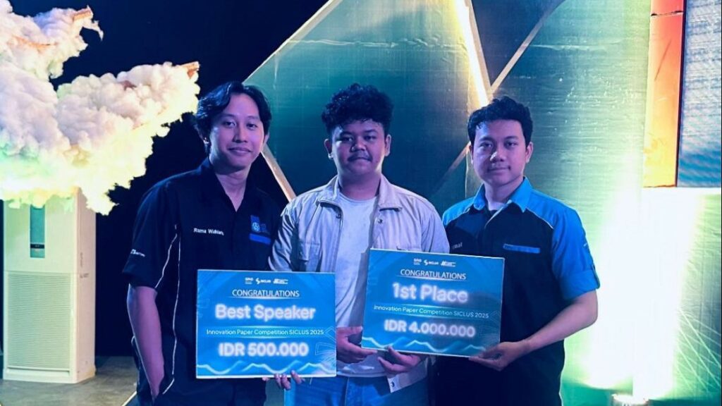 Image: The GACOR ELECTICS ITS team wins 1st place and Best Speaker at the SICUS 2025 Innovation Paper Competition. From left: I Ketut Rama Adi Widhiarta, Andi Bintang Adi Putra, and Akmal Zuhdi.