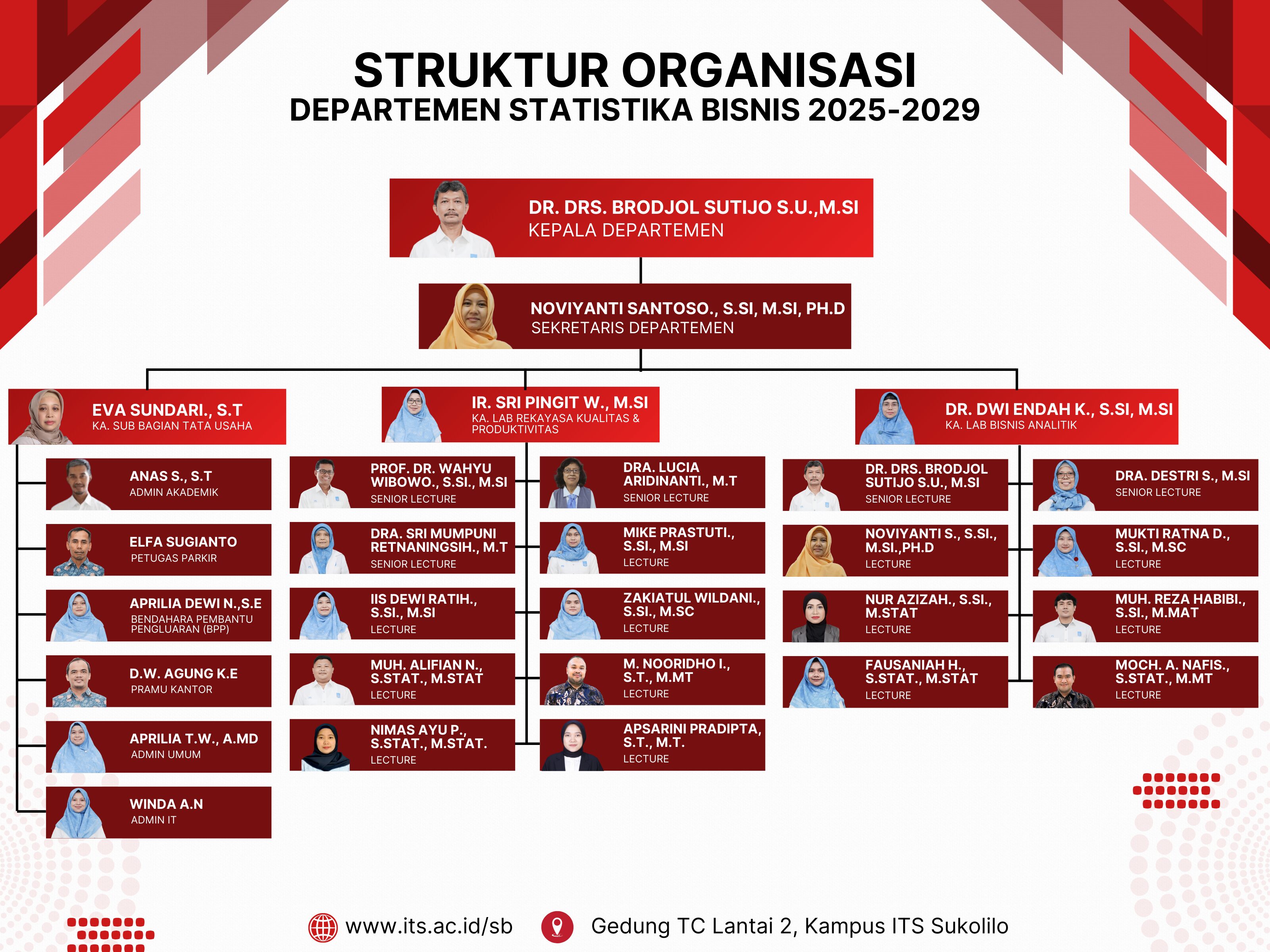 Struktur organisasi lengkap Departemen Bisnis Statistika Fakultas Bisnis ITS adalah sebagai berikut: