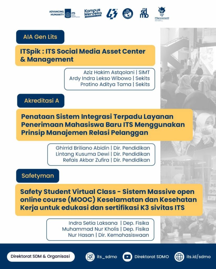 Kampus ITS, 20 November 2025 — Institut Teknologi Sepuluh Nopember (ITS) melalui Direktorat Sumber Daya Manusia dan Organisasi (SDMO)