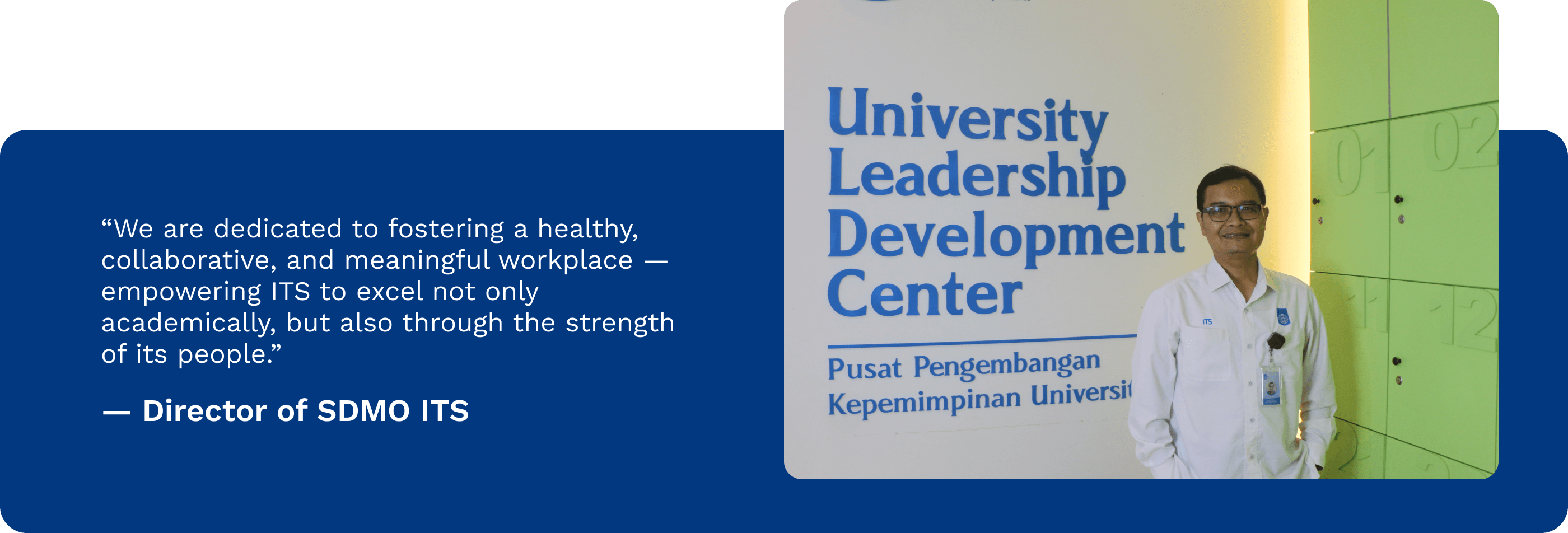 The Directorate of Human Resources and Organization (DSDMO) of ITS is an executive unit under the direct coordination of the Rector of ITS, responsible for human resource management and organizational structure development within Institut Teknologi Sepuluh Nopember.