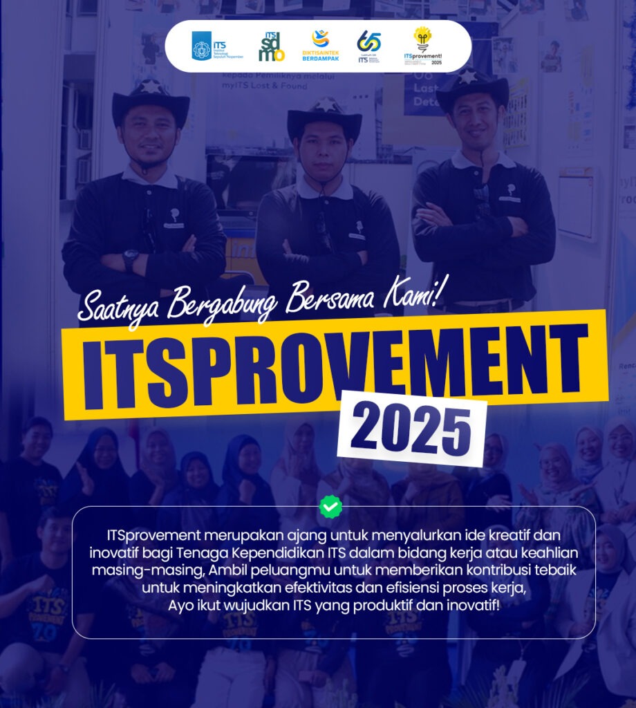 ITSprovement merupakan ajang untuk menyalurkan ide kreatif dan inovatif bagi Tenaga Kependidikan ITS dalam bidang kerja atau keahlian masing-masing.