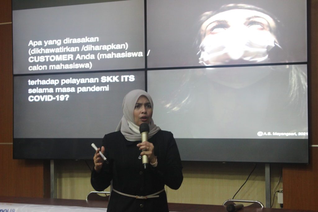 Pelatihan Be Hearty and Excellent Frontliner adalah salah satu kegiatan yang menjadi agenda rutin Direktorat Sumber Daya Manusia dan Organisasi yang bertujuan untuk membentuk karakter pelayanan sepenuh hati, peningkatan kemampuan bekomunikasi yang baik dengan tamu, dan peningkatan rasa percaya diri pegawai dalam melakukan pekerjaan . Peserta dari pelatihan ini adalah para garda terdepan ITS yaitu Tenaga Kependidikan Jabatan Petugas Keamanan dan Bagian Sarana dan Prasarana sejumlah 108 orang. Pelaksanaan pelatihan tersebut dibagi menjadi dua sesi secara offline dengan menerapkan protokol kesehatan yang ketat di Gedung Teater A, Kampus ITS, Sesi pertama dilaksanakan pada hari Rabu, tanggal 8 Desember 2021 pada pukul 13.00 – 17.00. Sesi pertama diikuti oleh Petugas Keamanan Regu A dan C sejumlah 36 orang serta Bagian Sarana Prasarana sejumlah 18 orang. Sementara, sesi kedua dilaksanakan pada hari Minggu, tanggal 12 Desember 2021 pada pukul 08.00 – 12.00. Sesi kedua diikuti oleh Petugas Keamanan Regu B dan D sejumlah 39 orang serta Bagian Sarana Prasarana sejumlah 15 orang.