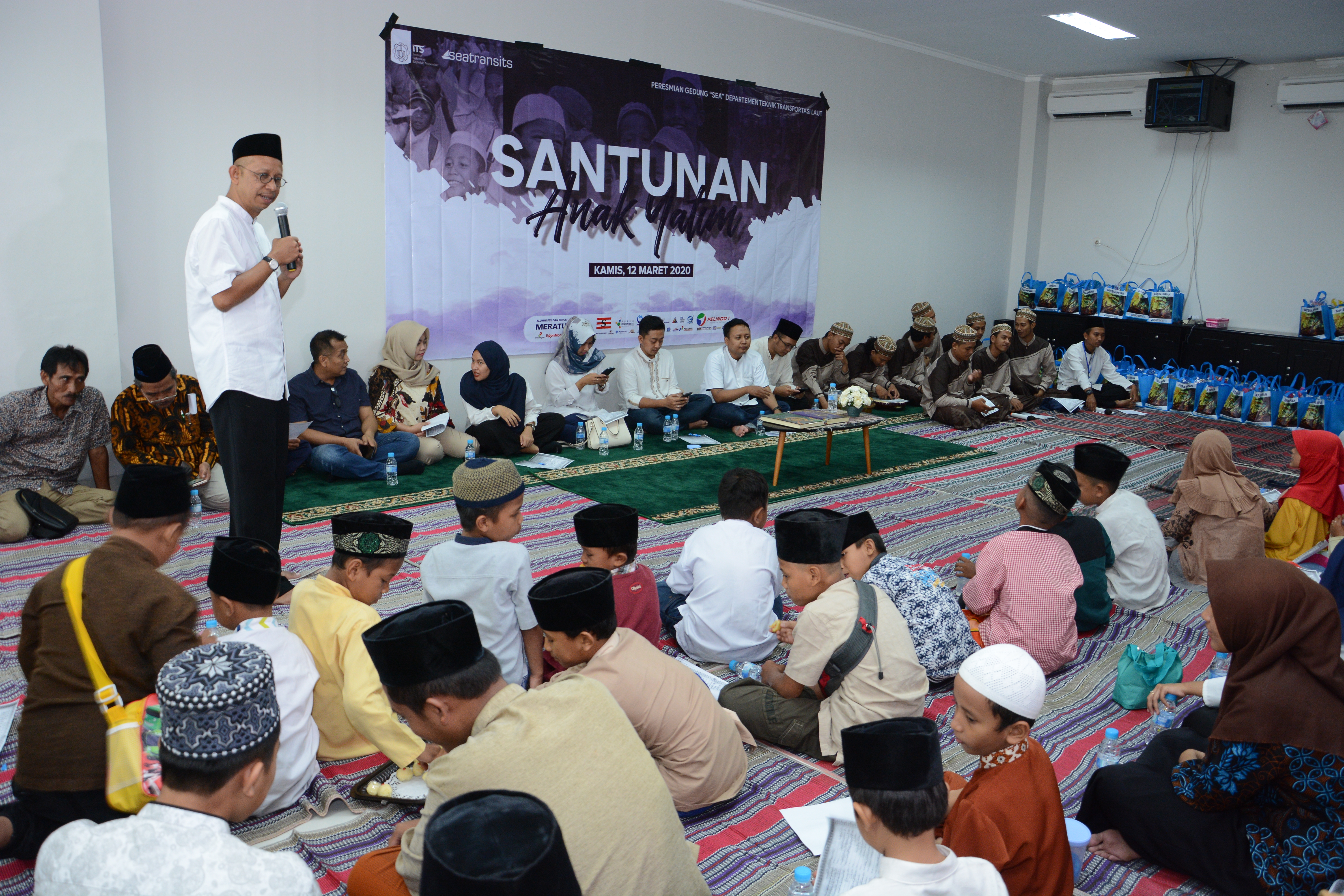 ITS Campus, Seatrans News – Starting a series of inauguration events for the new lecture building, the Department of Marine Transportation Engineering (DTTL) held an orphanage benefit on Thursday (12/3). In collaboration with the Department of Da’wah Department (LDD) As-Safinah, DTTL brought 50 orphans from the As-Sholihin orphanage and the As-Sa’adah Orphanage. The event which was held in the form of istighosah and joint prayer was a form of gratitude for the establishment of the new DTTL lecture hall.