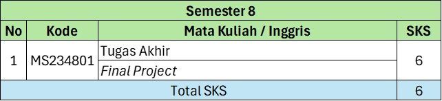 Berikut adalah struktur kurikulum yang disusun sedemikian rupa sehingga Capaian Pembelajaran Lulusan yang telah ditentukan dapat tercapai.