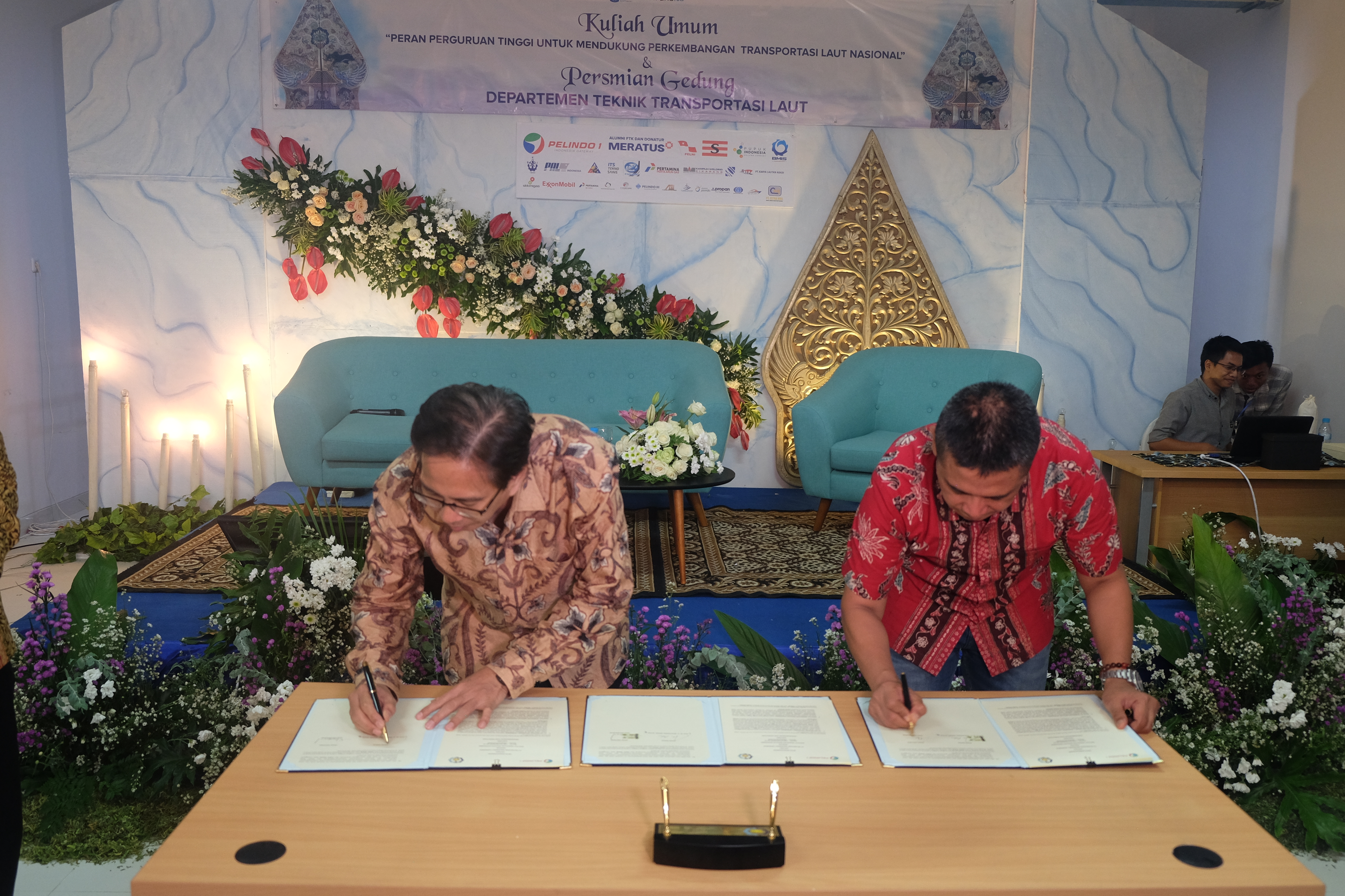 Kampus ITS, Seatrans News — Bersamaan dengan diresmikannya gedung baru Departemen Teknik Transportasi Laut (DTTL) Institut Teknologi Sepuluh Nopember (ITS) pada Jumat (13/3), Direktur Utama PT Pelabuhan Indonesia (Pelindo) I, Dian Rachmawan turut mengisi kuliah umum. Tak hanya berdiskusi terkait bidang kepelabuhanan, dalam kesempatan ini juga dilaksanakan penandatangan nota kesepahaman (MoU) kerjasama penelitian dan pemanfaatan ilmu pengetahuan dan teknologi dengan Pelindo 1.