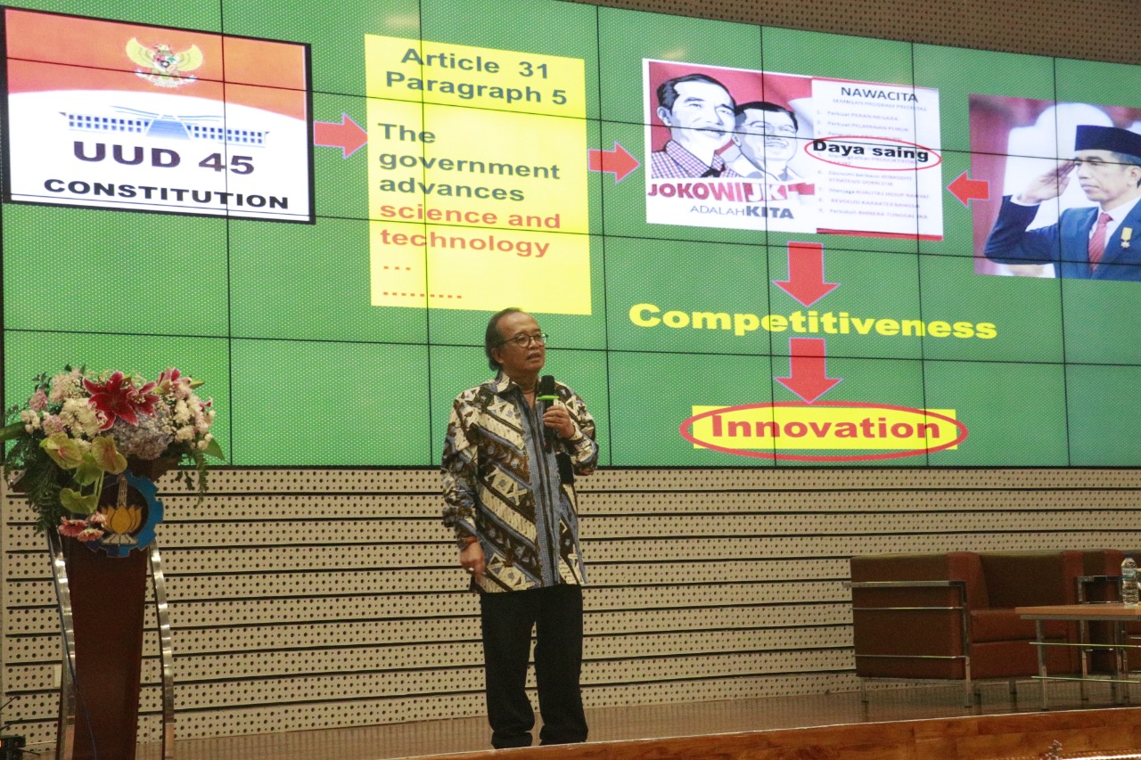 Mengacu pada Global Innovation Index, Bambang, begitu ia akrab disapa, bertutur bahwa Indonesia berada pada peringkat 85 dari 126 negara dalam hal inovasi. Hal tersebut dinilai sangatlah rendah untuk ukuran negara sebesar Indonesia. Untuk itu, ia menyatakan bahwa perlu sekali dukungan dari berbagai pihak untuk mewujudkan suatu inovasi. “Pada tahun 2025, diharapkan Indonesia dapat membangun ekonomi berbasis inovasi,” harapnya.