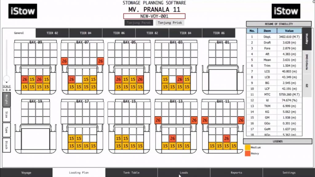 Tampilan iStow untuk penataan posisi muatan pada Kapal Container