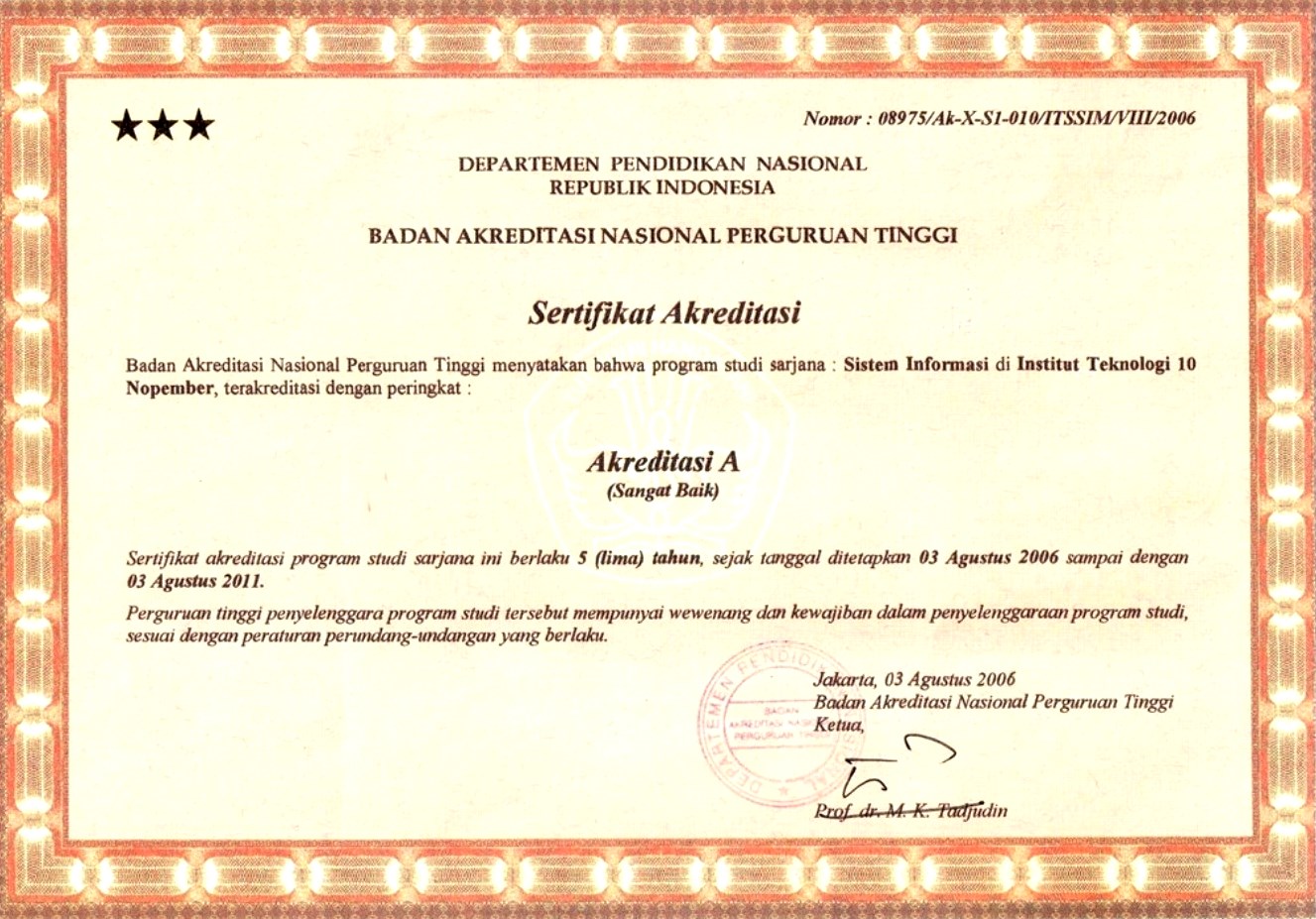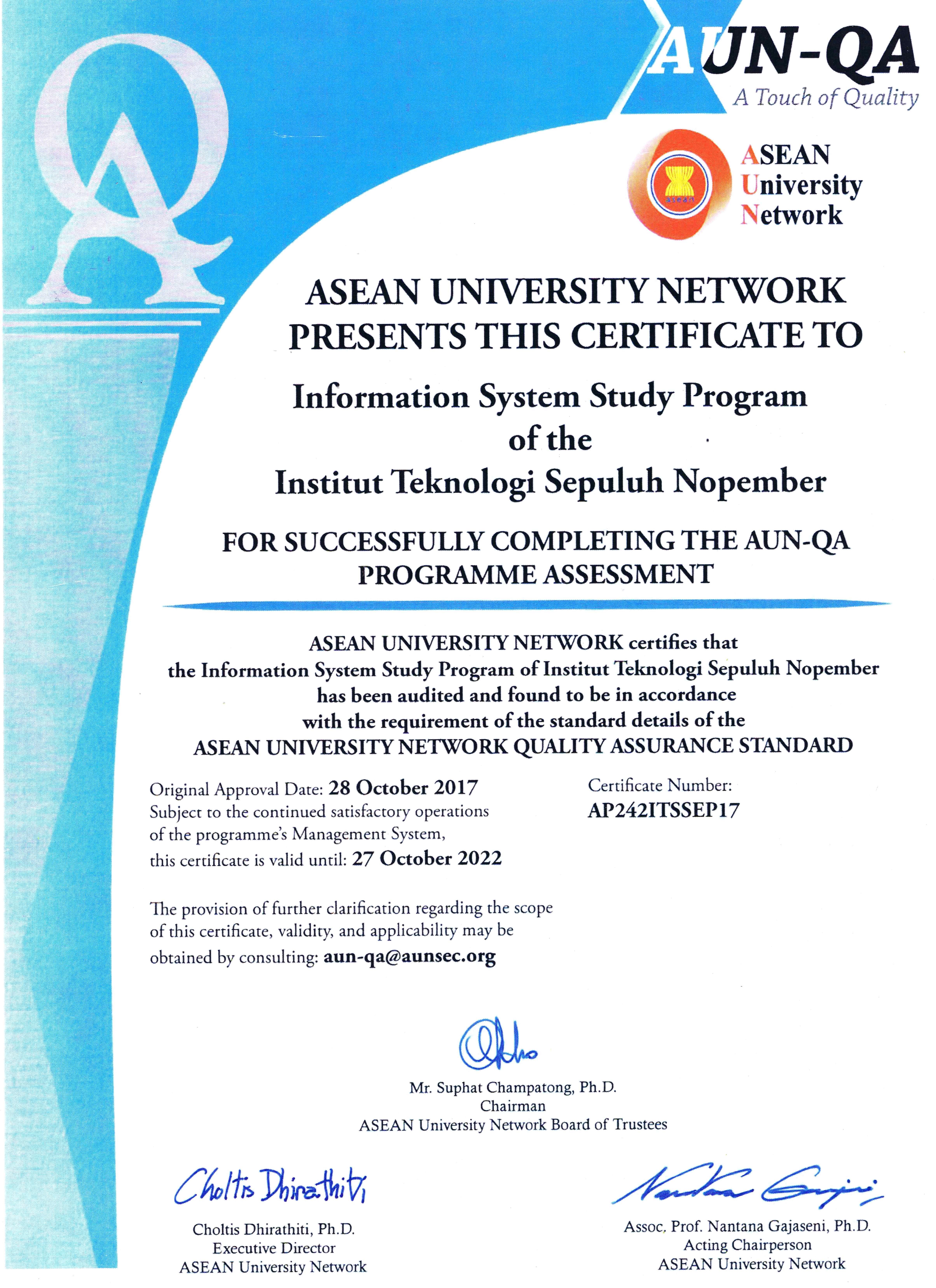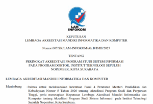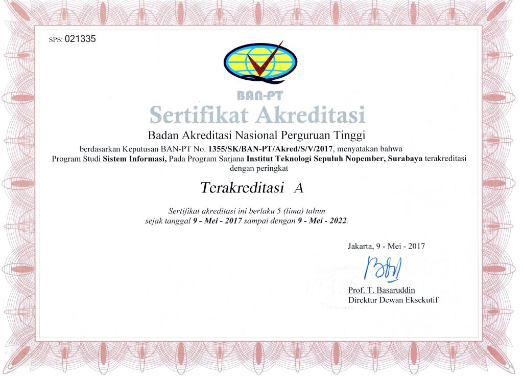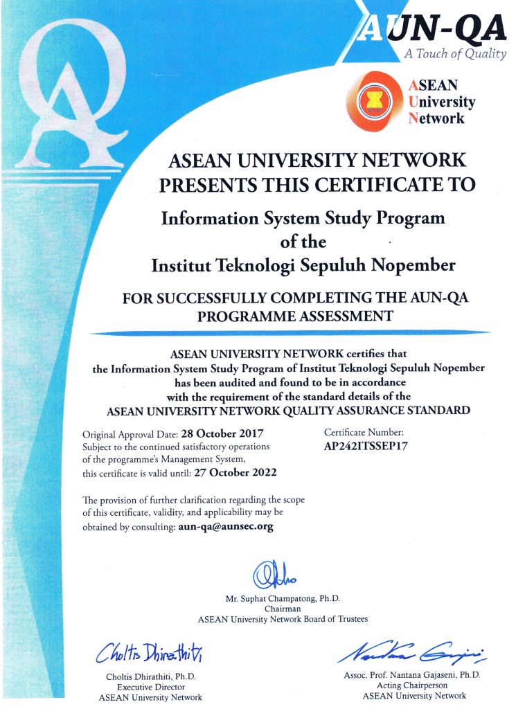 Departemen Sistem Informasi, Institut Teknologi Sepuluh Nopember (ITS) memiliki reputasi yang kuat di tingkat nasional. Hal ini dibuktikan dengan akreditasi dan sertifikasi yang menjamin kualitas pendidikan dan penelitian di Departemen Sistem Informasi.