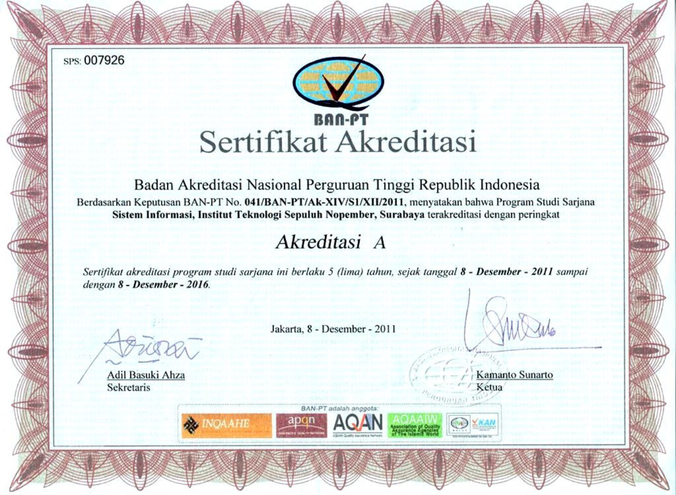 Akreditasi nasional yang dilakukan yang dilakukan oleh departemen sistem informasi ada 2 yaitu BAN-PT dan atau LAM Infokom