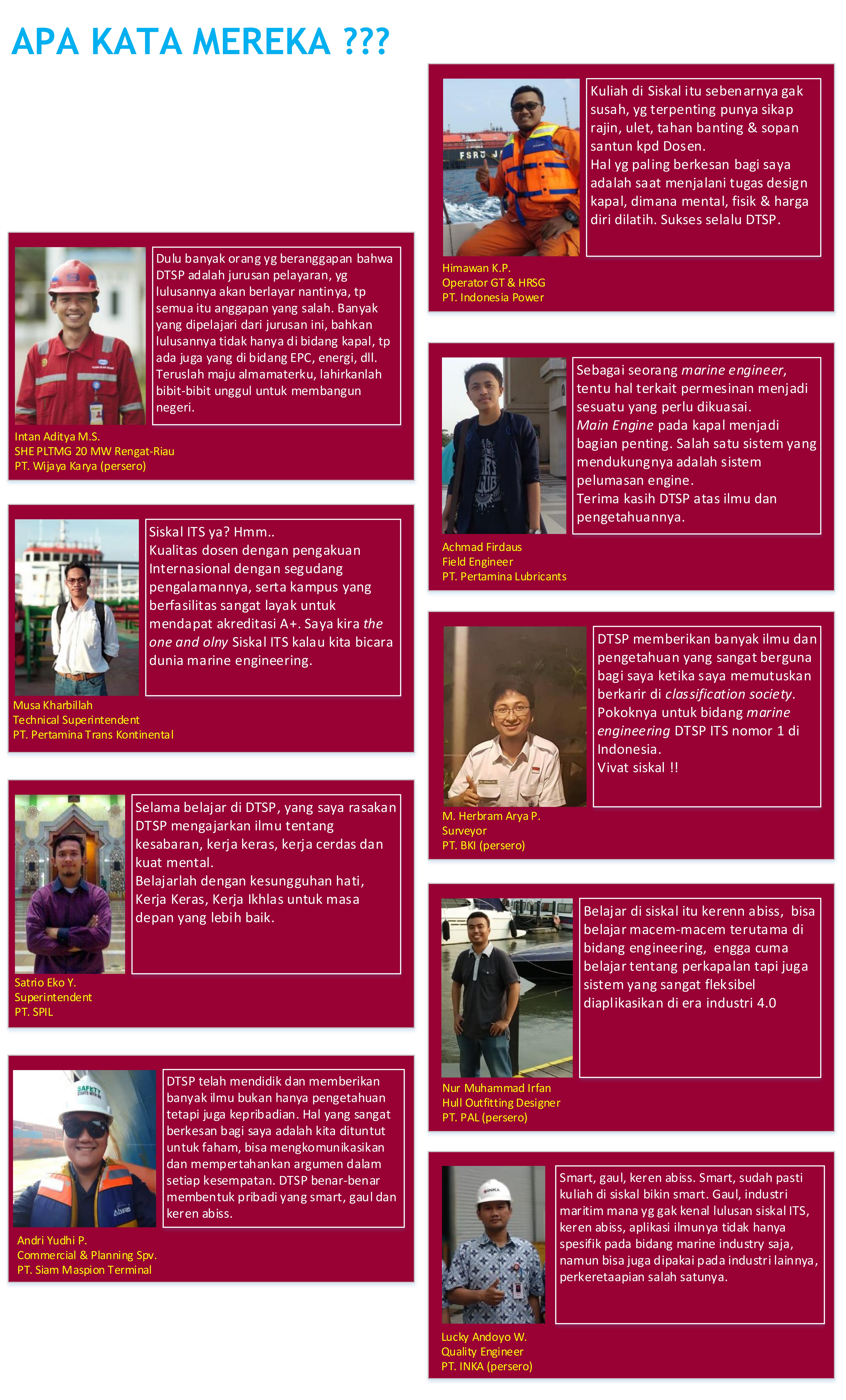 Untuk menjaga hubungan baik antara Departemen Teknik Sistem Perkapalan (DTSP) ITS dengan Alumni, maka secara berkala dilakukan studi pelacakan (tracer study) kepada alumni Departemen Teknik Sistem Perkapalan yang bertujuan untuk pembaharuan database alumni, seperti Nama alumni, Tahun angkatan alumni, Kantor tempat bekerja, dan lainnya. Sehingga diharapkan terjalin hubungan yang kompak antara alumni dan departemen.