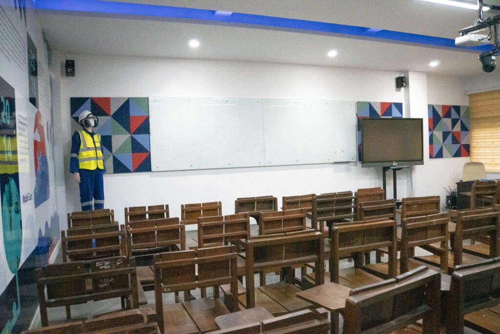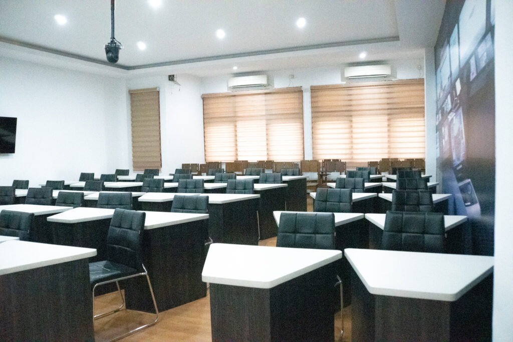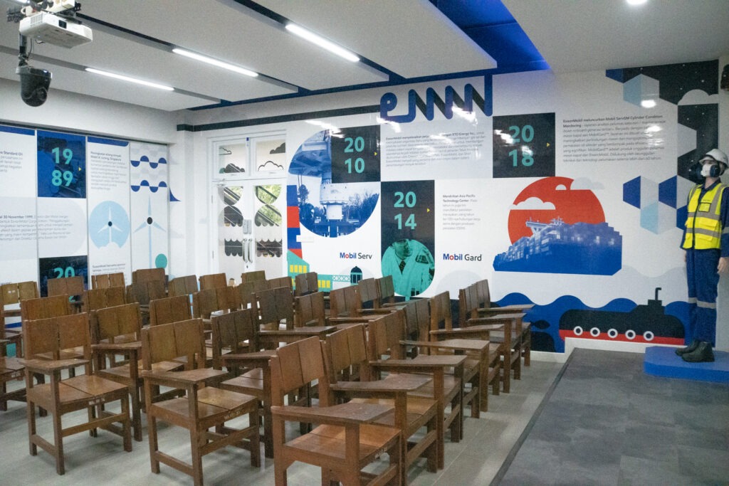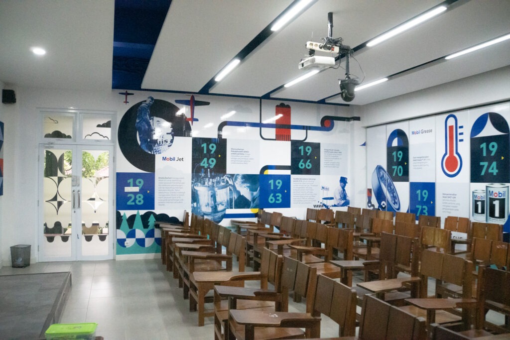 The design of WA 104 incorporates an elongated layout and modern design, allowing it to host a substantial number of students, reaching around 80 individuals. The classroom’s theme revolves around contemporary ship engine technology. Furthermore, it has received a grant from PT. EXXON MOBILE 1, covering funding for both essential and supportive facilities. The classroom is aesthetically pleasing, featuring eye-catching elements such as the classroom walls, student and instructor desks, projector screen, and air conditioning. This design ensures a comfortable and conducive learning environment, contributing to students’ enjoyment and engagement during lectures.
