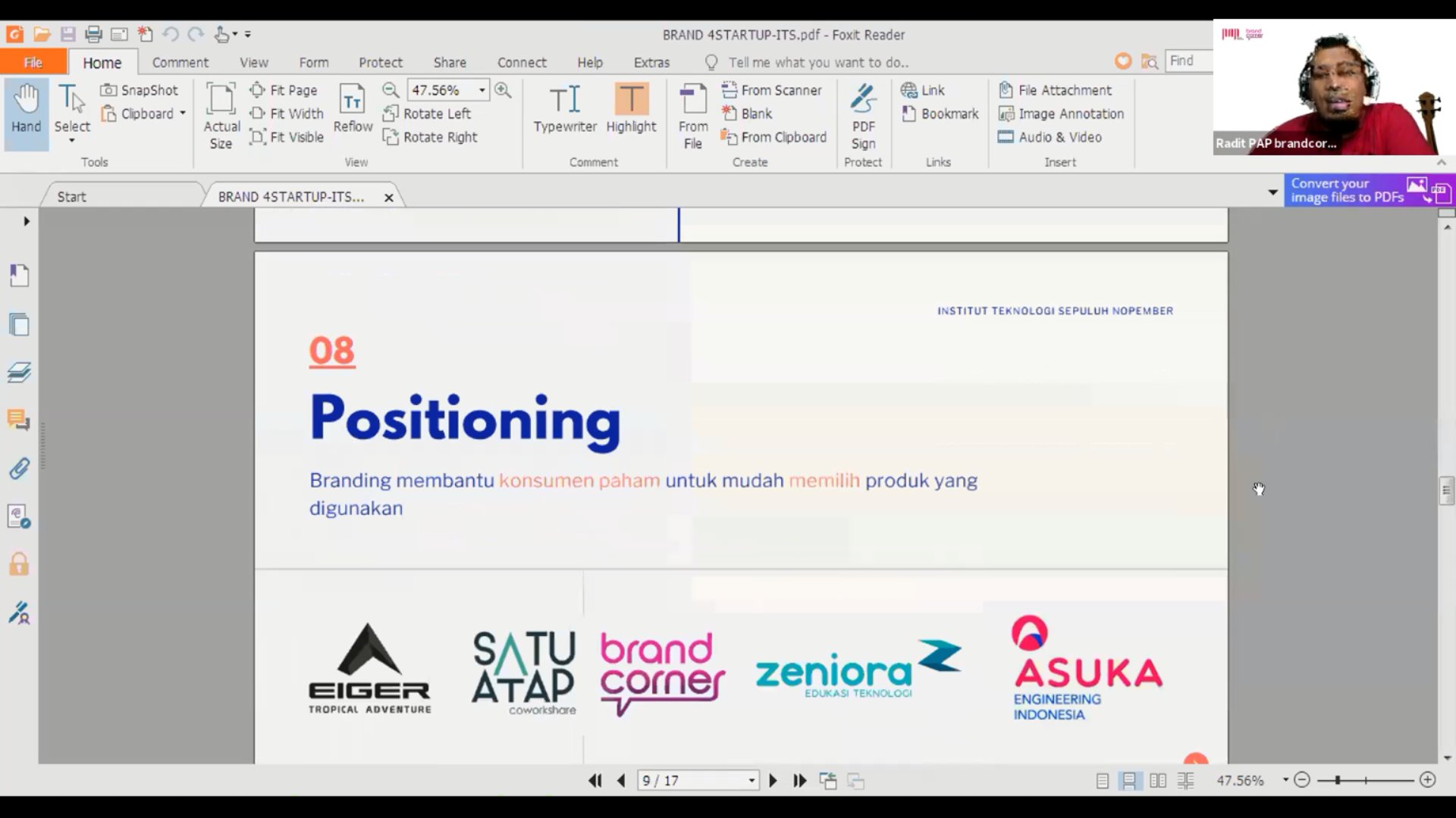 Carrying the theme “Branding for Startups”, the activities that have been held nine times provide an understanding of the term “branding” which is often confused with marketing (marketing) and selling (sales). Radityo Suryo Hartanto ST, one of the speakers explained that branding, marketing, and selling are three different things. Marketing itself refers to the market share, which is the percentage of total sales in an industry generated by a particular company.