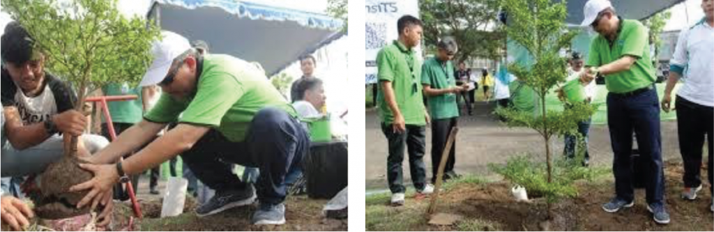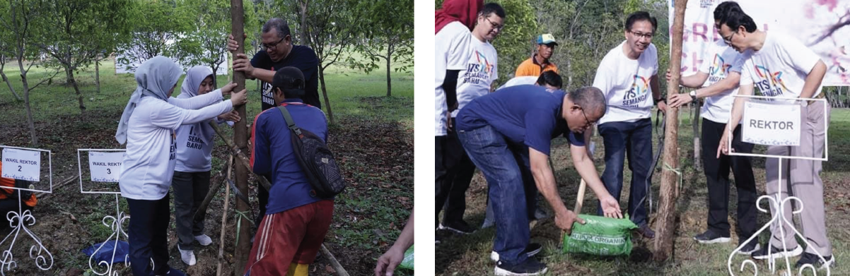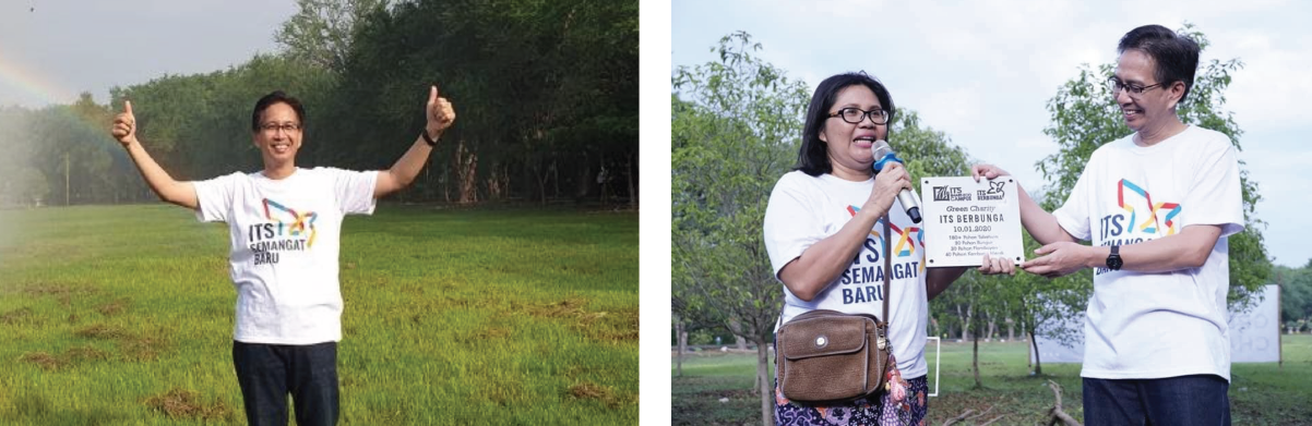 Menanam 220 pohon Tabebuya yang membuat ITS berbunga serta 30 pohon flamboyan, 30 tanaman bungur dan 40 kembang merak.