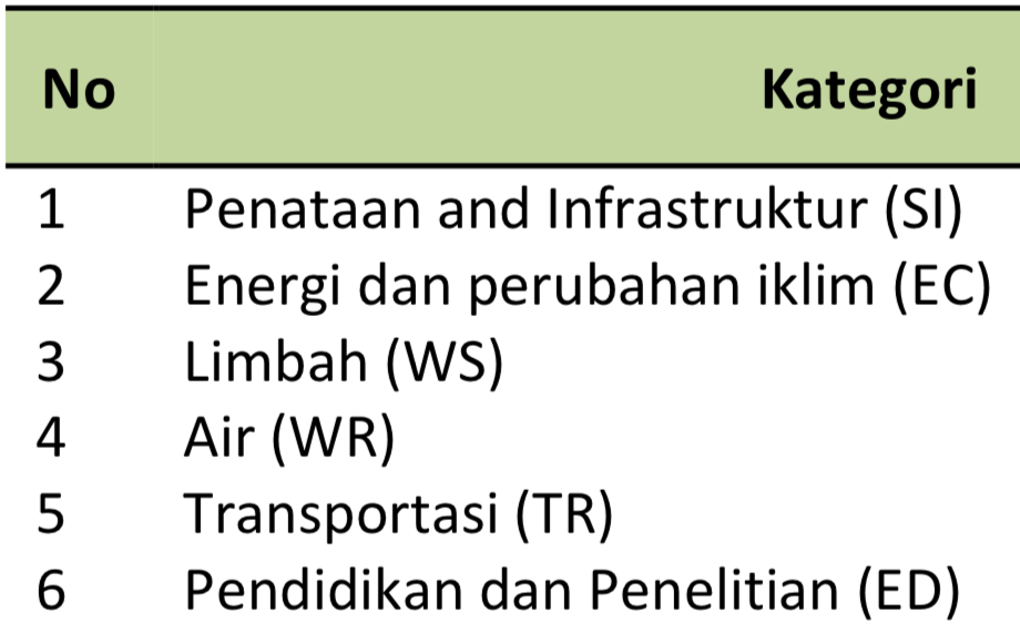 Kategori dan bobot poin yang digunakan pada tahun ini adalah sebagai berikut :