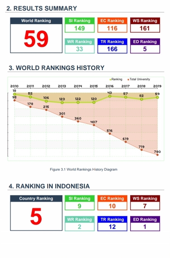 Universitas Indonesia mengawali sebuah Peringkat Universitas Dunia pada tahun 2010 yang kemudian dikenal dengan nama “UI GreenMetric World University Rankings“ untuk mengetahui usaha berkelanjutan kampus. Hal ini dimaksudkan untuk membuat survei online untuk melihat program dan kebijakan berkelanjutan pada universitas di seluruh dunia.