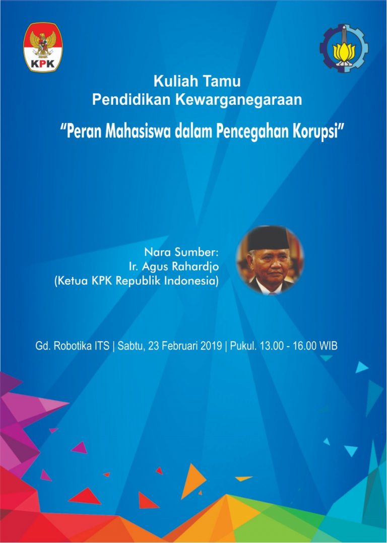 Kuliah tamu antikorupsi akan digelar pada: Hari: Senin, 17 Maret 2019 Waktu: Lokasi:
