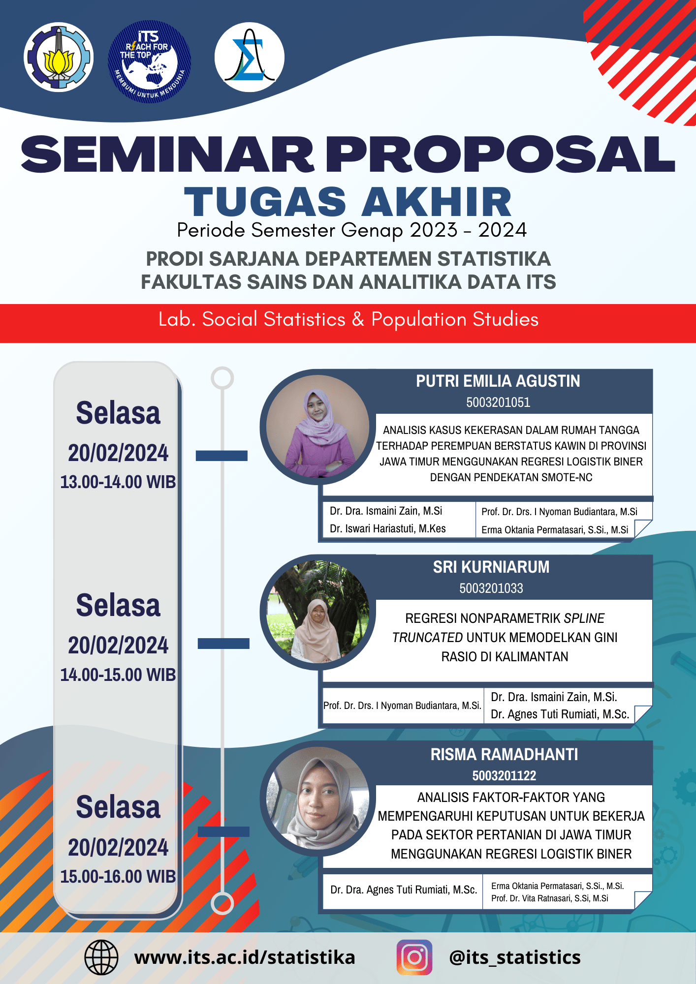 Program Doktor (S3) Statistika ITS Membuka Pendaftaran Mahasiswa Baru.     Departemen Statistika, Fakultas Sains dan Analitika Data (FSAD),