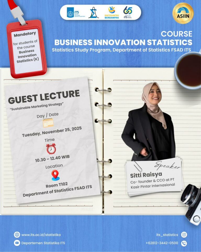 Surabaya, 25 November 2025 Departemen Statistika ITS menggelar Kuliah Tamu bertema “Sustainable Marketing Strategy”,