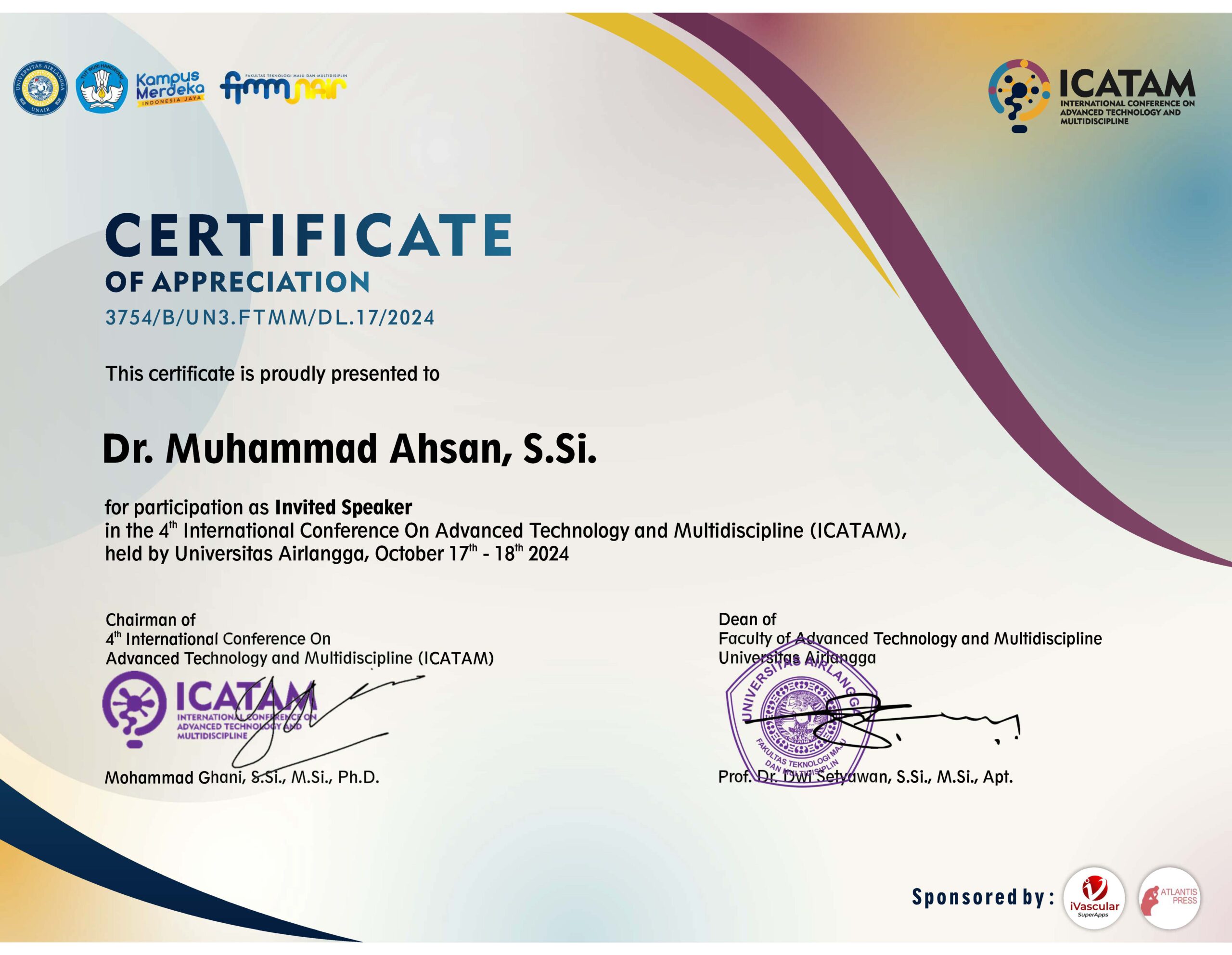 Invited Speaker in The 4th International Conference On Advanced Technology and Multidiscipline (ICATAM 2024)