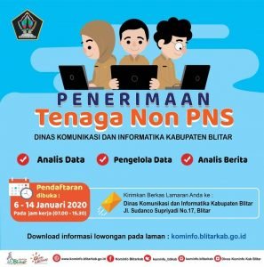 Penerimaan Tenaga Non PNS untuk formasi: Analis Data, Pengelola Data dan Analis Berita di Dinas Komunikasi dan Informatika Kabupaten Blitar.