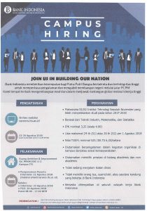 Bank Indonesia memberikan kesempatan bagi Putra Putri Bangsa bertalenta dan berintegritas tinggi untuk memperkaya pengalaman dan mengabdi membangun negeri melalui jalur PCPM Kami tempat terbaik mengembangkan keahlian dalam menjawab tantangan global melalui kinerja tinggi