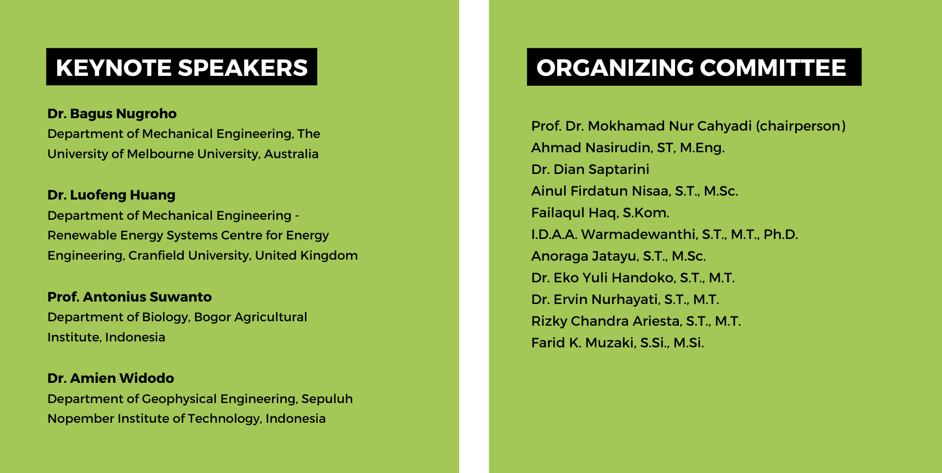 Chair: Prof. Joni Hermana, M.Sc.ES., Ph.D, Environmental Enggineering Departement, Institute Teknologi Sepuluh Nopember, Surabaya, Indonesia