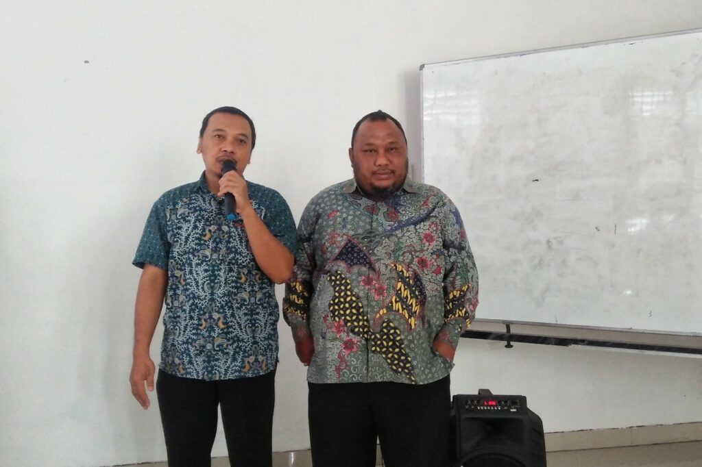 Dr Bambang Sudarmanta ST MT sebagai Koordinator STP Otomotif ITS (kiri) ketika memberi sambutan pembukaan, bersama dengan Direktur Inovasi, Kerja sama, dan Kealumnian ITS Dr Eng Kriyo Sambodho ST M Eng (kanan)