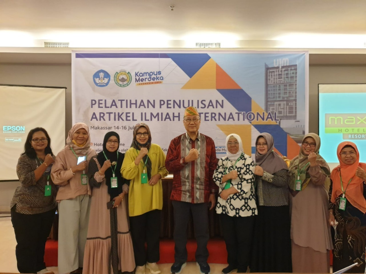 Prof Drs Ec Ir Riyanarto Sarno MSc PhD (tengah berpeci) saat menjadi trainer pelatihan penulisan publikasi artikel ilmiah internasional
