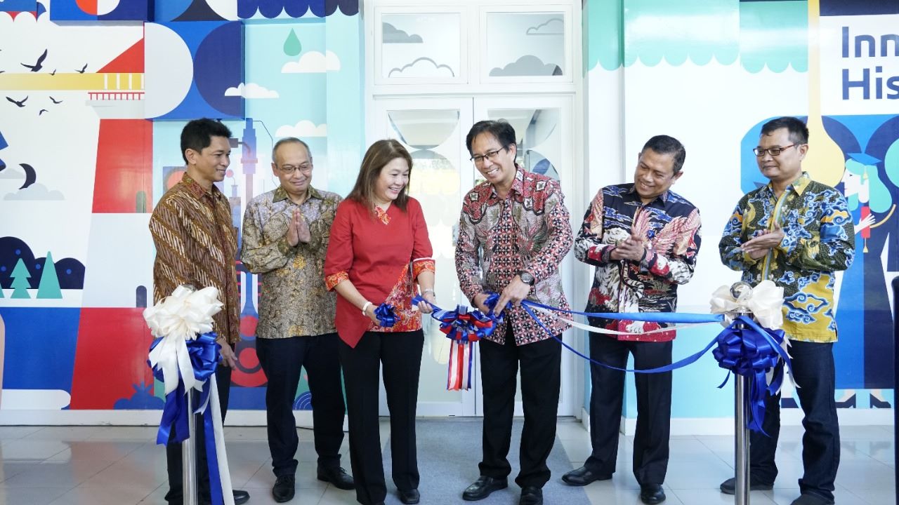 Prof Dr Ir Mochamad Ashari MEng (tiga dari kanan) dan Joanne Eu (tiga dari kiri) meresmikan secara simbolis ruang kelas hasil kerja sama ITS dengan ExxonMobile Marine