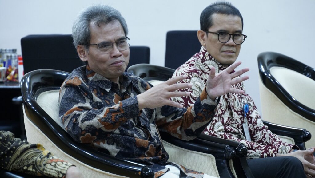 Dr Ir Endroyono DEA (kiri) selaku penanggung jawab kerja sama sekaligus Program Director 5G Experience ITS saat diskusi di ruang kerja Rektor ITS sebelum acara penyerahan hibah