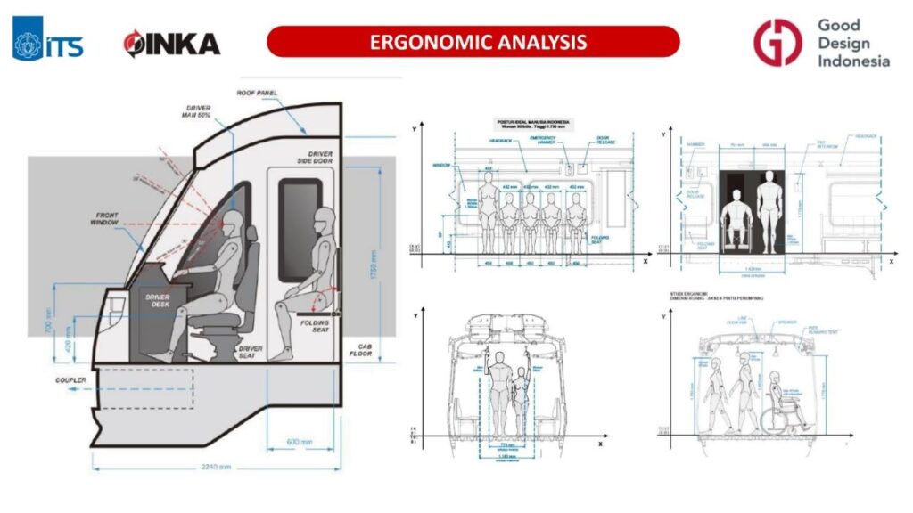 Analisis ergonomis juga dilakukan untuk mengetahui kenyamanan penumpang ketika berada di kereta dengan mempertimbangkan aspek antropometri pengguna