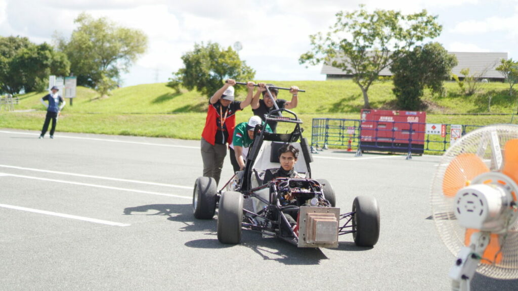 Mobil Anargya EV Mark 3.0 saat dilakukan inspeksi oleh para juri FSAE Japan 2023 sebelum berlomba