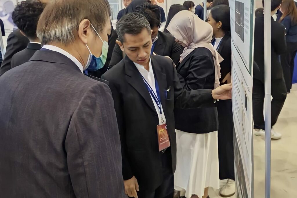 Ketua Tim MF Kedaireka ITS X Pelindo TPK Dr Adithya Sudiarno IDipNEBOSH GradlOSH (pakai name tag) saat menjelaskan inovasi Bandar Safety kepada pengunjung di KIIDE 2023, Taiwan