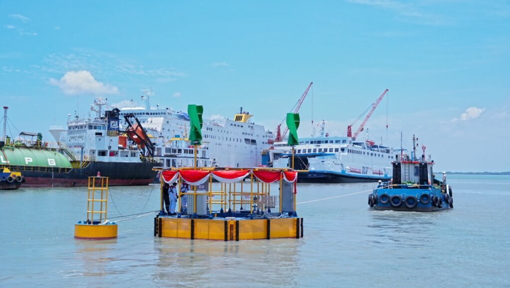 Lebih lanjut dijelaskan oleh Sjarief, alat ini tersusun dari enam knock down trapezoid pontoon yang dilengkapi dengan marine renewable energy devices berbasis tenaga surya dan angin. Susunan tersebut nantinya bekerja sebagai buoy multi guna (multipurpose buoy) dan navigasi kapal.