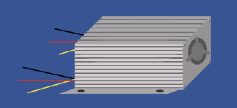 Motor Listrik Daya DC high voltage 74V dari baterai diubah menjadi DC high voltage 72V menggunakan converter sebelum dialirkan ke motor listrik.