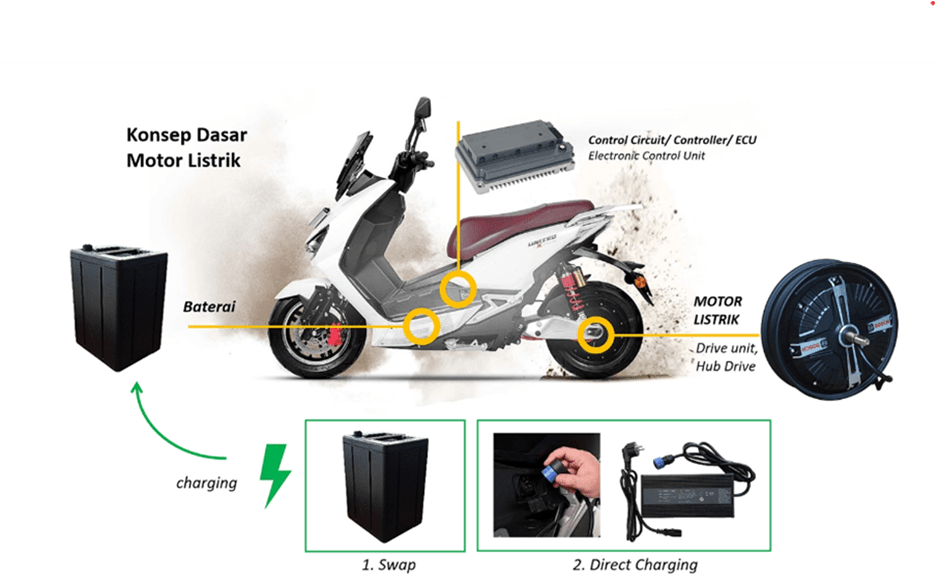 Menurut (unitedmotor.co.id) cara kerja motor listrik pada kendaraan listrik adalah :